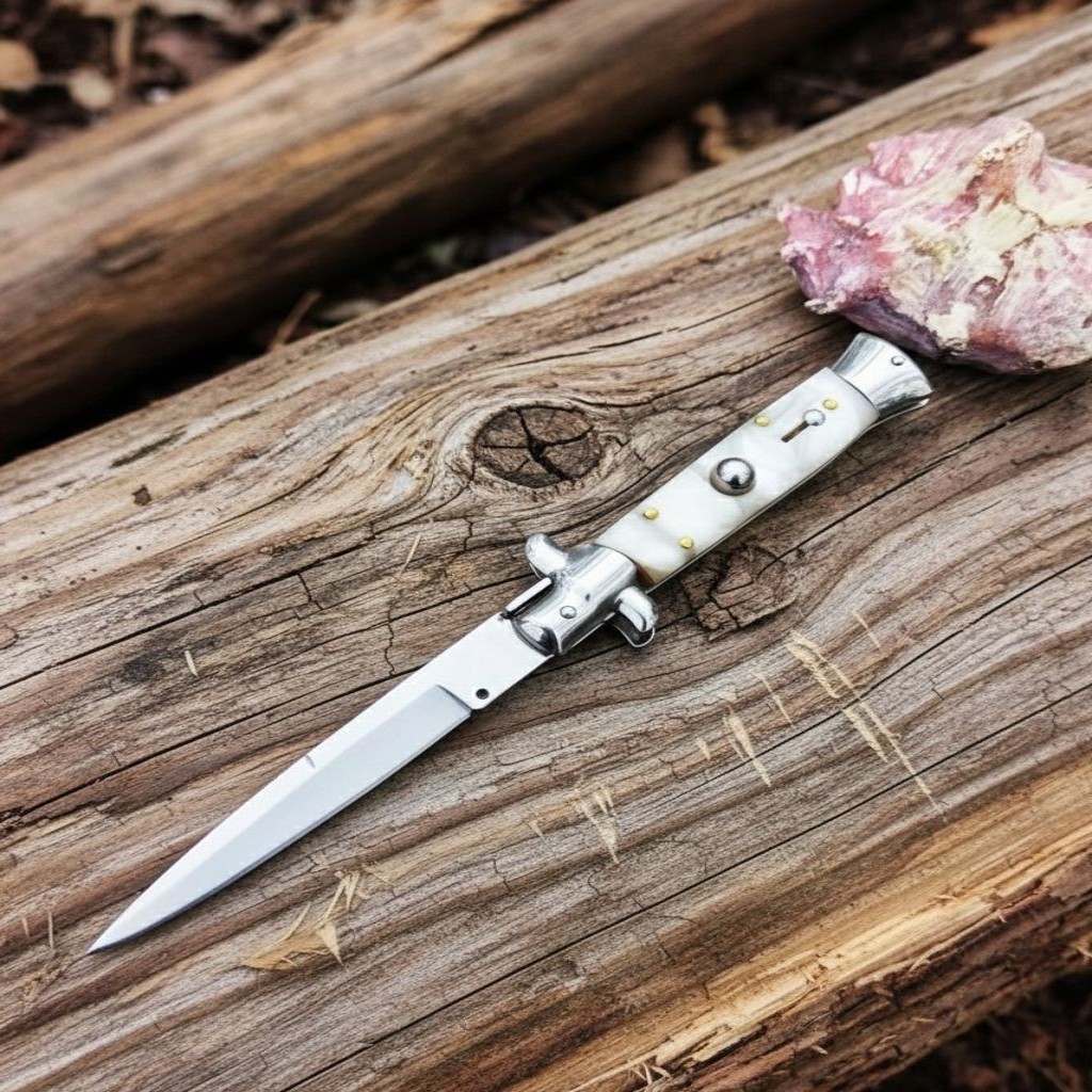 Ürünün namlu kısmında kullanılan 420 kalite paslanmaz çelik, 52 HRC sertlik derecesiyle ideal bir esneklik ve dayanıklılık dengesi sunar. Zamak üzerine işlenen sedef kaplama kabza, bıçağa sadece şıklık katmakla kalmaz, aynı zamanda ergonomik bir tutuş hissi sağlar. Hızlı açılır mekanizması ve güvenliği elden bırakmayan emniyet kilidi ile güvenli bir kullanım deneyimi vaat eder.