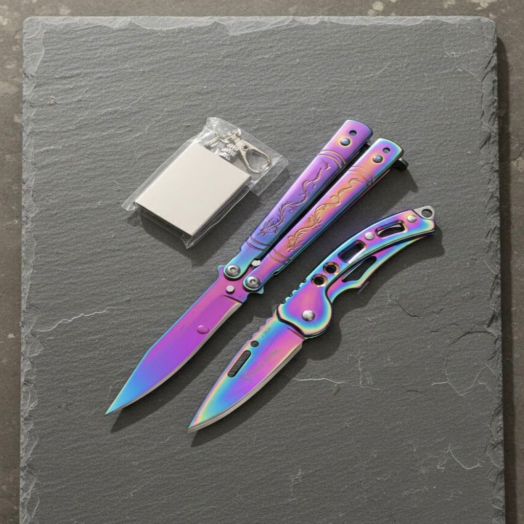 Koleksiyoncular ve günlük kullanım için ekstrem bir tasarım arayanlar için özel olarak üretilen Benchmade Mini Ejdeha Motifli Kelebek Seti, göz alıcı "Gökkuşağı" (Rainbow) kaplaması ve dayanıklı yapısıyla öne çıkıyor. Üstelik bu özel set, yanında hediye mini çakı ve metal kibrit ile birlikte tam bir hayatta kalma ve aksesuar kiti sunuyor.