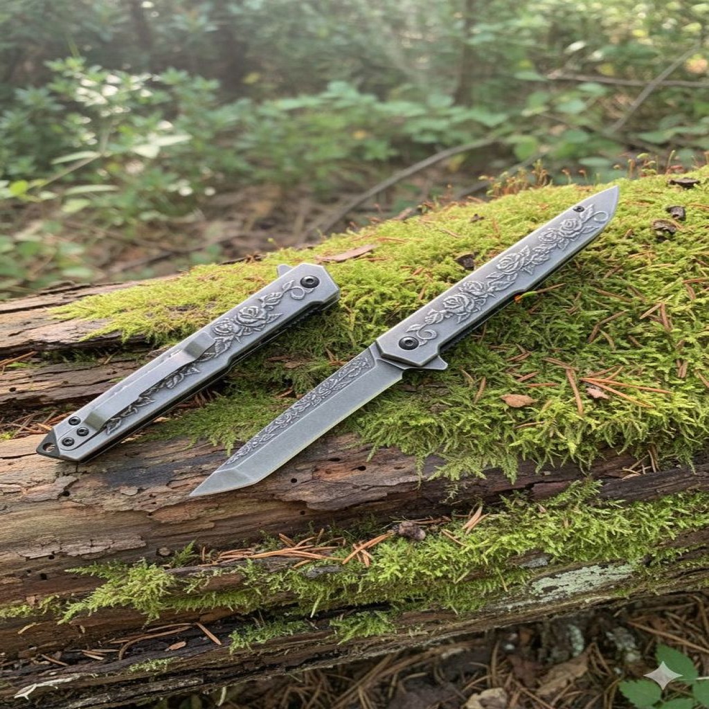 Bu özel serinin en dikkat çekici özelliği, kabza üzerindeki titanyum kaplama ve estetik gül motifli işlemelerdir. Siyah (Black) rengin asaletini taşıyan bu çakı, sadece bir kamp ekipmanı değil, aynı zamanda bir koleksiyon parçası niteliğindedir. Güvenli kullanım için geliştirilen emniyet mekanizması ve pratik taşıma sağlayan kemer klipsi ile her an yanınızda taşımaya uygundur.