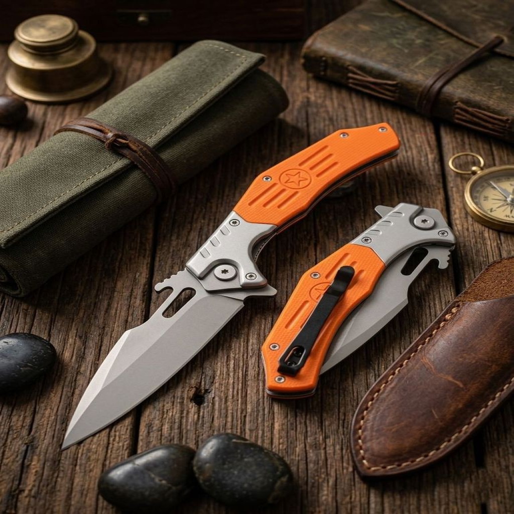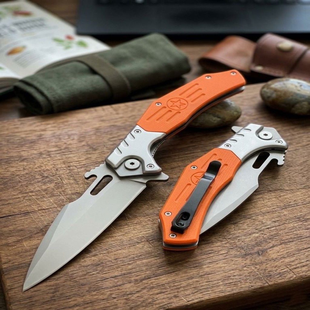 Ergonomik Tasarım: Turuncu renkli G10 kabzası, ıslak veya nemli koşullarda bile mükemmel tutuş sağlar. Görünürlüğü yüksek rengi sayesinde doğada kaybolma riskini minimize eder.