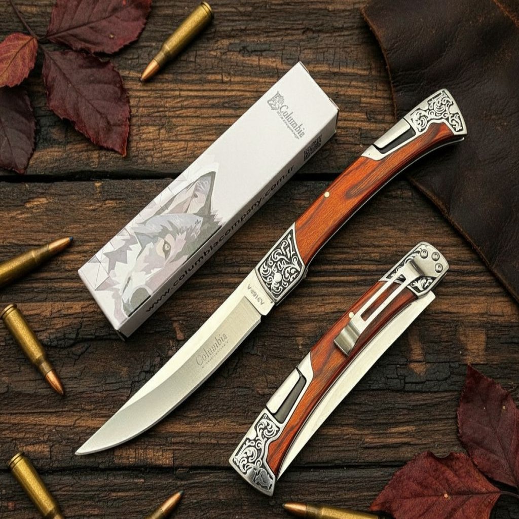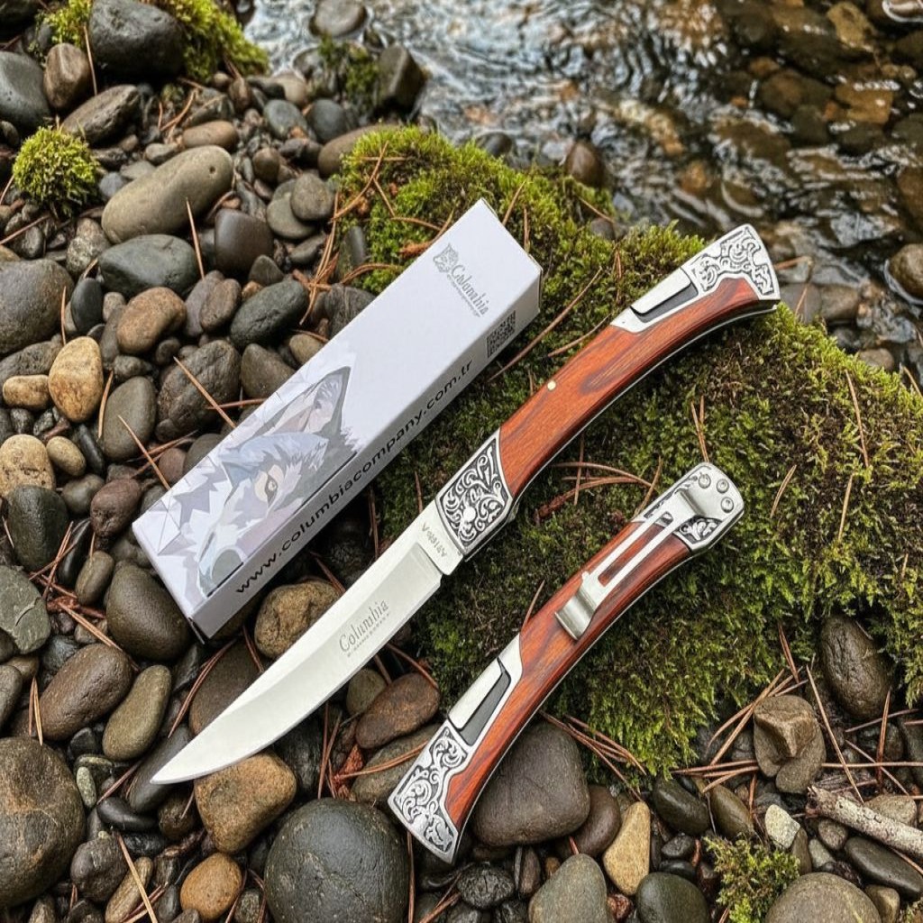 Doğa tutkunları ve koleksiyonerler için özel olarak tasarlanan Columbia Company A3165-A İşlemeli Manuel Kamp Çakısı, hem estetiği hem de fonksiyonelliği bir arada sunuyor. Gövde üzerindeki zarif gravür işlemeleriyle dikkat çeken bu model, dayanıklı yapısıyla zorlu kamp koşullarında yüksek performans sergiler.