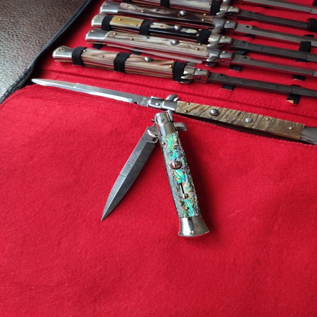 Ürünün en dikkat çekici özelliklerinden biri olan kabza, gerçek Deniz Kulağı (Abalone) kullanılarak üretilmiştir. Mavinin en derin tonlarını yansıtan bu doğal malzeme, ışığa göre renk değiştiren yapısıyla büyüleyici bir görsel şölen sunar. Ergonomik yapısı ve estetik duruşuyla bu çakı, sadece bir kesici alet değil, bir prestij göstergesidir.
