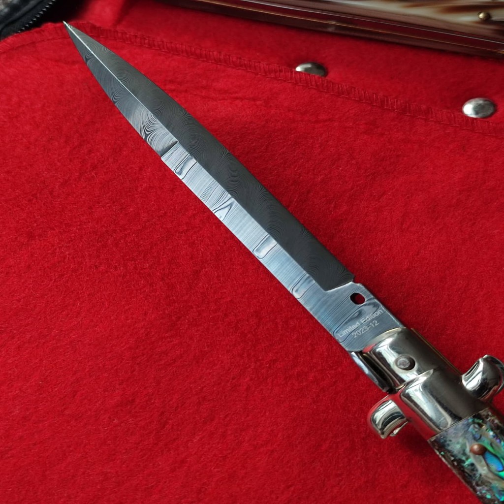 Frank Beltrame'in sınırlı sayıda ürettiği bu model, koleksiyonunuza değer katacak bir yatırım parçasıdır. Damascus çeliğinin dayanıklılığı, Abalone kabzanın eşsiz dokusuyla birleşerek hem fonksiyonel bir kullanım hem de vitrinlerde sergilenecek bir estetik sunar. Parmak izi bırakmayan işçiliği ve kusursuz açılma mekanizmasıyla İtalyan kalitesini her dokunuşta hissedeceksiniz.