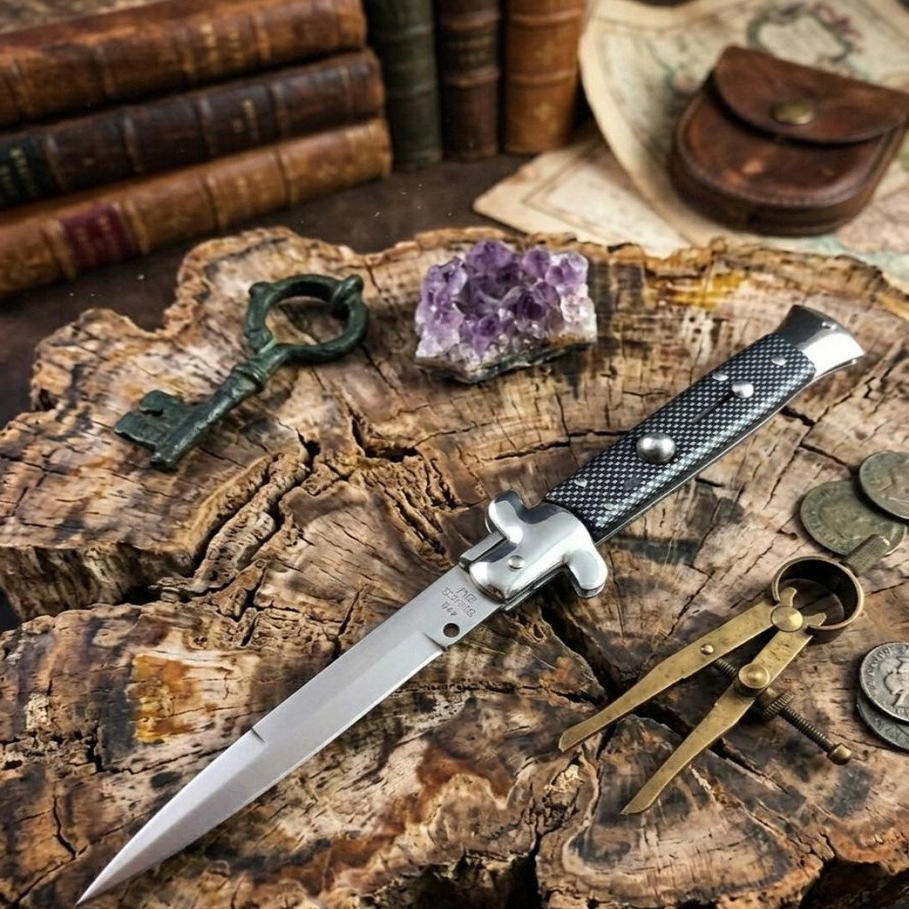 Klasik İtalyan tasarım hatlarını modern üretim teknolojisiyle birleştiren İtalyan Damalı Stiletto, hem koleksiyoncular hem de günlük kullanımda şıklık arayanlar için özel olarak tasarlanmıştır. 440C paslanmaz çelik kullanılarak üretilen namlusu, 60 HRC sertlik değeriyle üstün keskinlik ve dayanıklılık sunar.