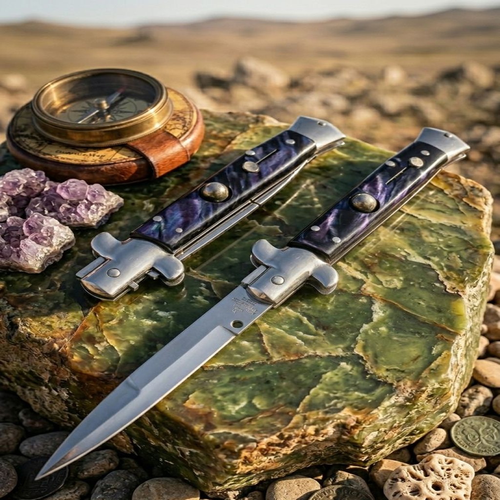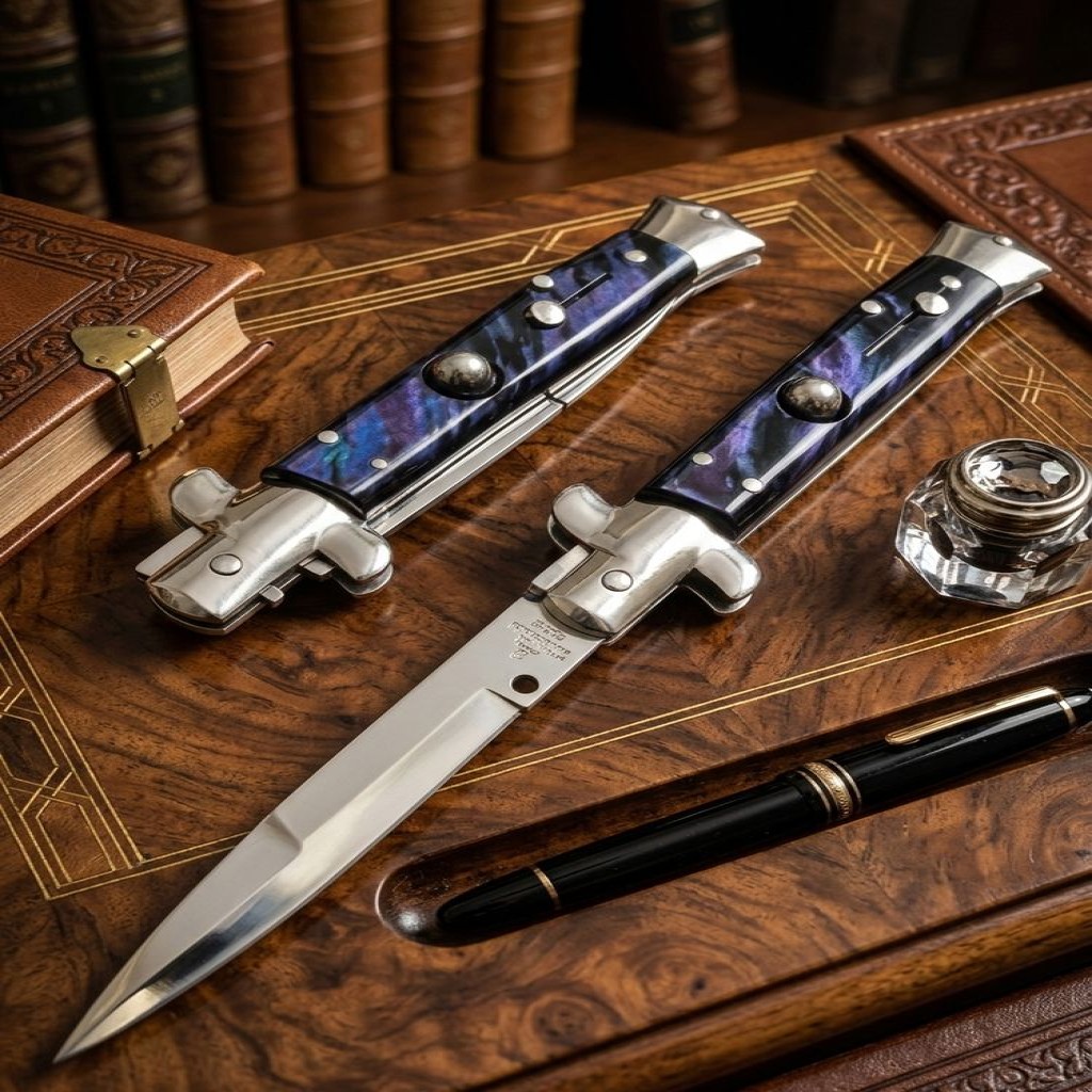Doğa tutkunları ve bıçak koleksiyonerleri için özel olarak tasarlanan Stain Steels Mavi İtalyan Stiletto, klasik İtalyan çizgisini modern malzeme kalitesiyle birleştiriyor. 440C paslanmaz çelikten üretilen namlusu, 60 HRC sertlik değeriyle uzun süreli keskinlik ve dayanıklılık vaat eder.